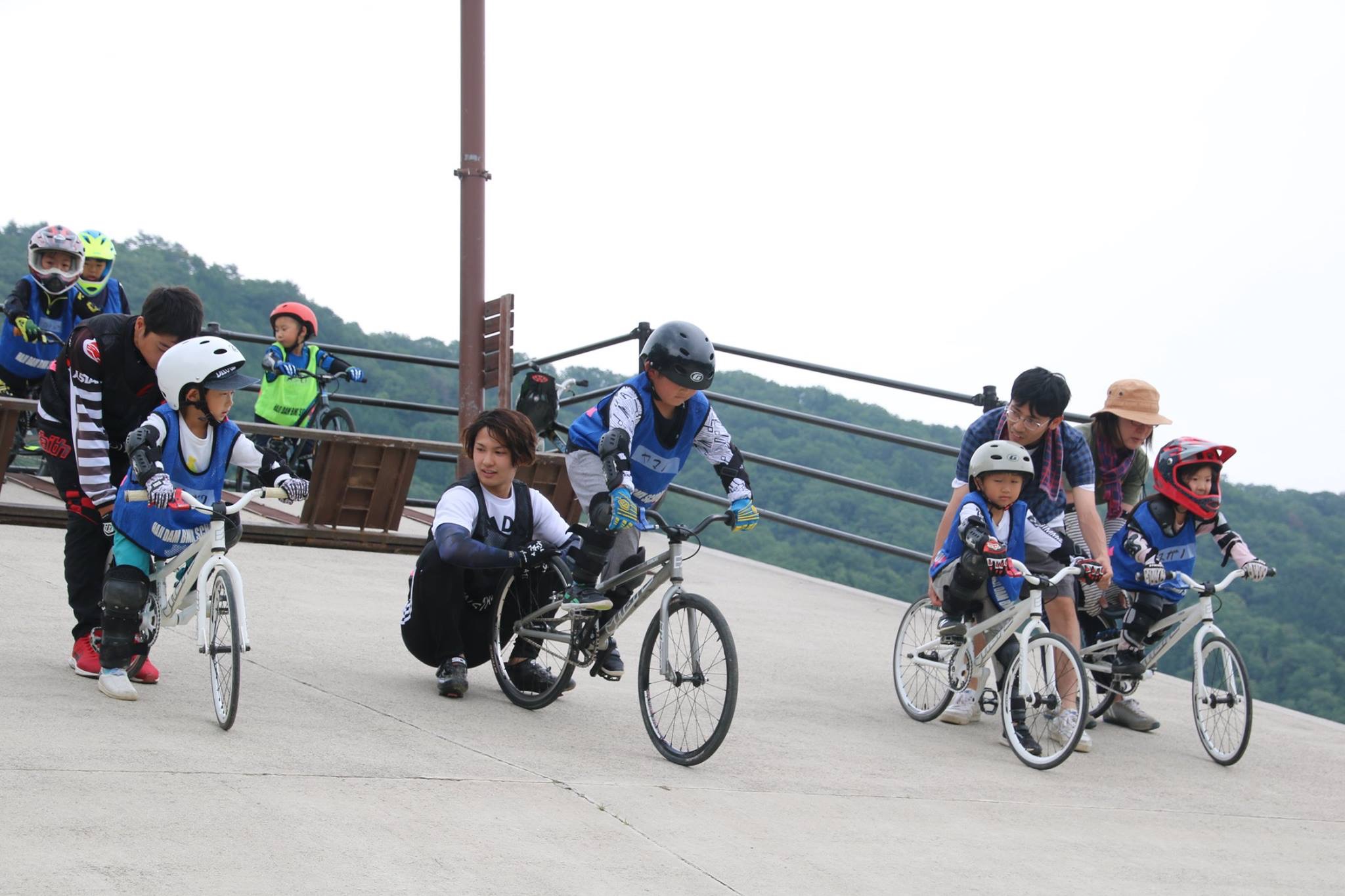 BMXレースはスタートがとても大事。8期生は基本的なスタートフォーム、9期生は、スタンディング練習をしました。続いて、リズムセクションにおいて、プッシュ練習を行いました。最後は、スタートゲートを使い、ゴールまで。安全で早く走れる様に皆さん頑張っていました。スクール2回目にして、スタートからゴールまでの一連の流れを習得、子供達の上達の早さにびっくりしています。
