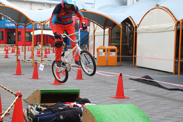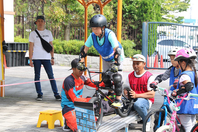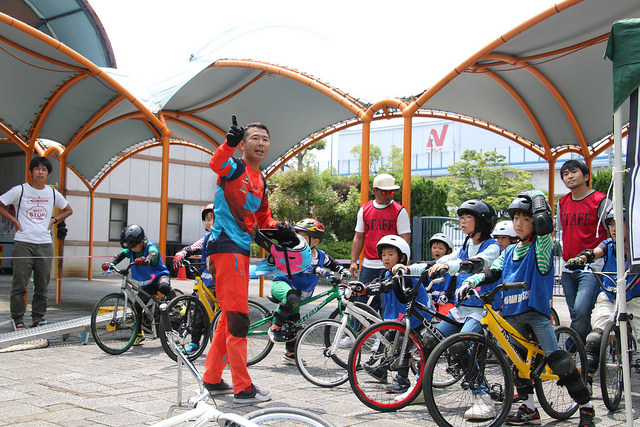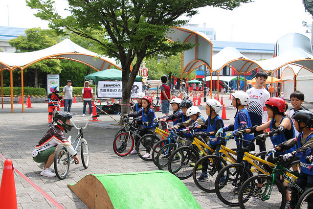梅雨の中休みの快晴、サイクルパーク広島にてBMX体験会が行われました。今回は、80名余りの参加がありました。ジャンプ台やパンプ台のデコボコで、楽しい!、サイコー!の歓声、スタート台で緊張して泣き出す子もいたり、新たな事にチャレンジする姿が印象的でした。また、インストラクターによるジャンプアトラクションもあり、参加者全員が楽しめた体験会でした。お疲れ様でした。