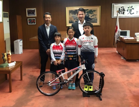 7月16日、湯崎 英彦県知事殿を、山木 茂県会議員殿に同行していただき、島田 忠彦会長、御澤 志祐選手、中村 真唯選手、中村 優里選手が、「2019 UCI BMX選手権/ベルギー・ゾルダー大会」の出場について、表敬訪問しました。ワールドゼッケンを目標に、広島県から世界へ挑戦するライダーを激励してくださいました。